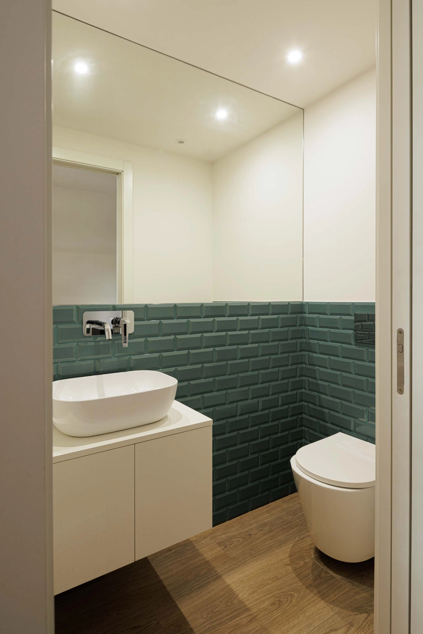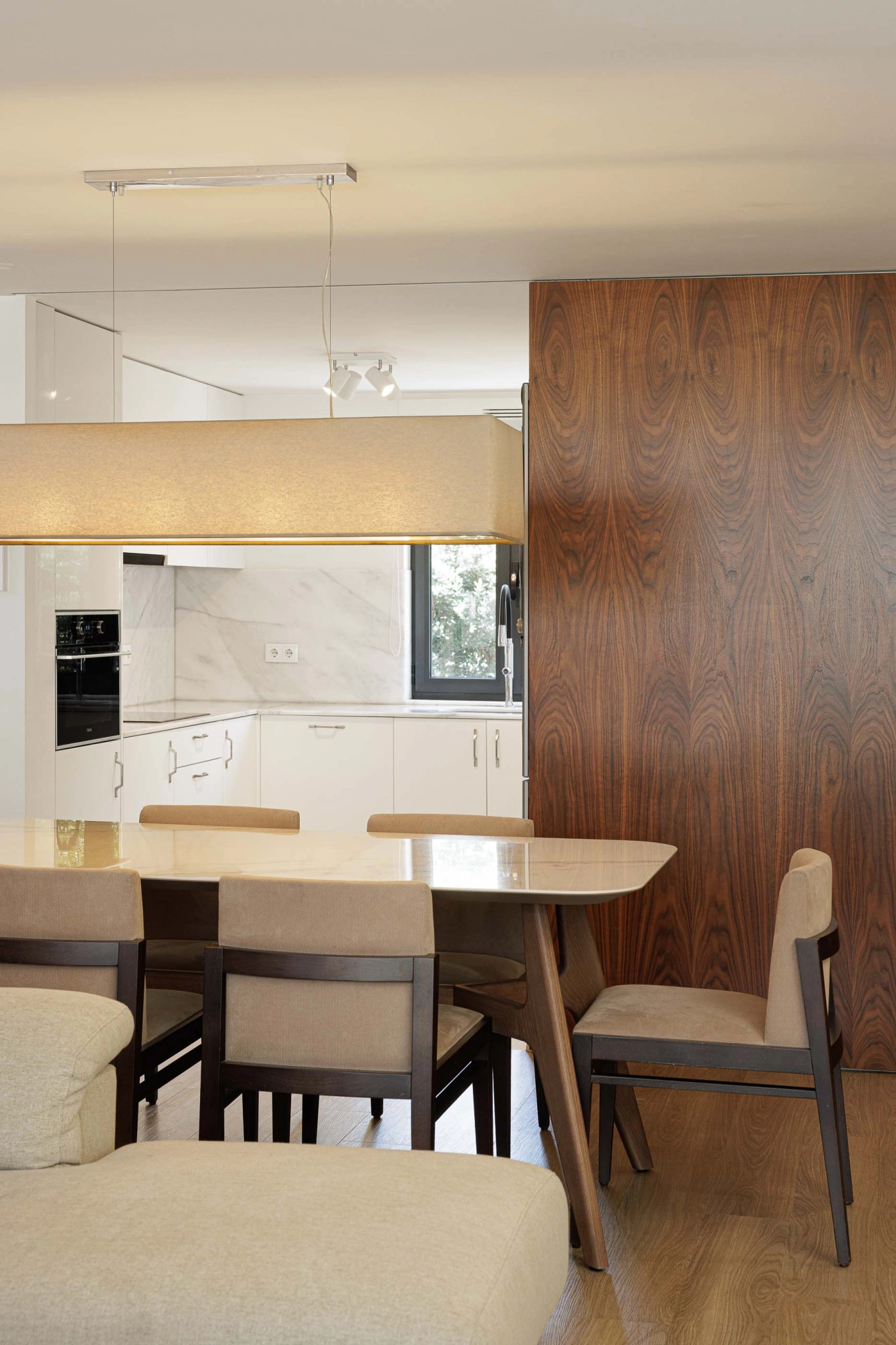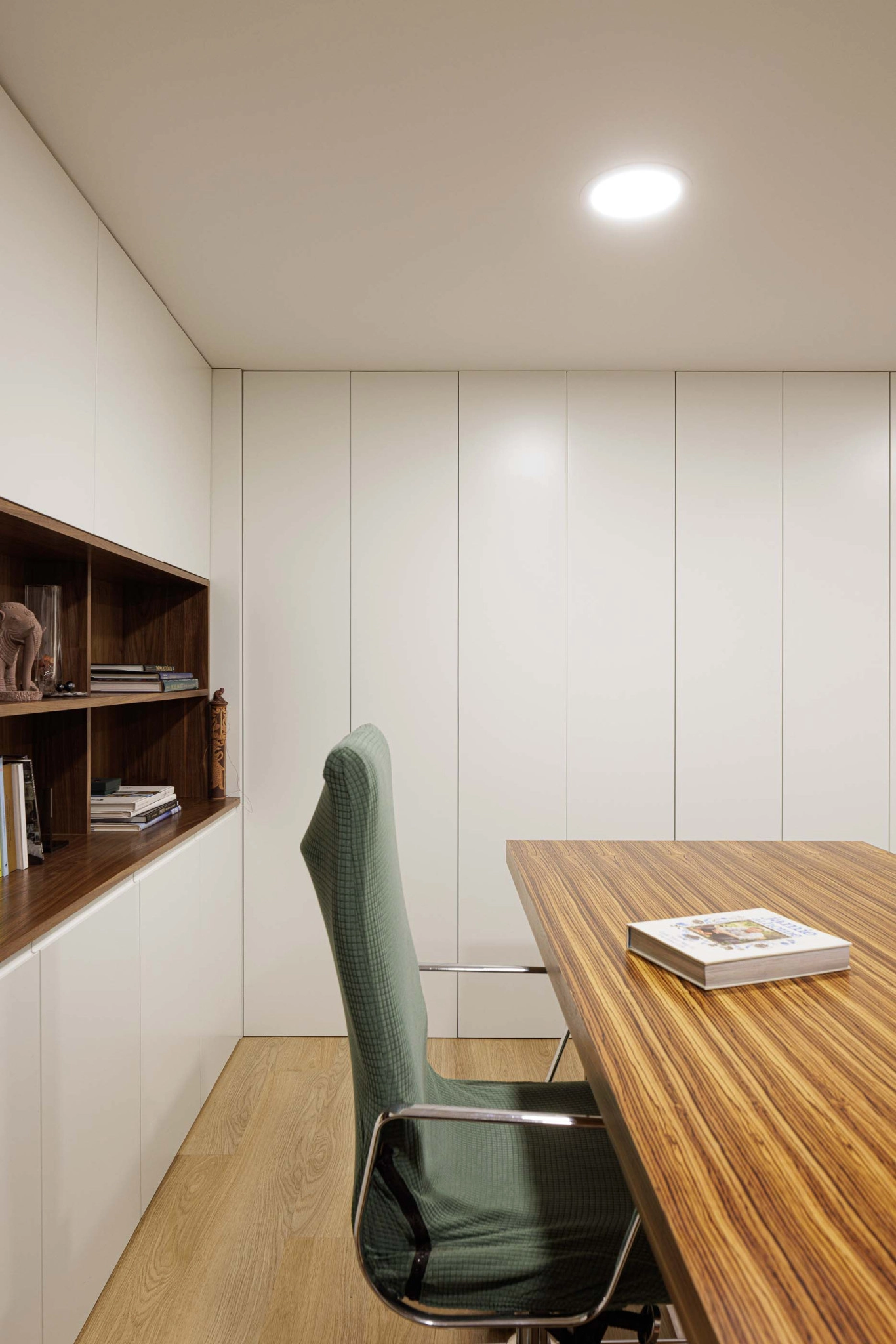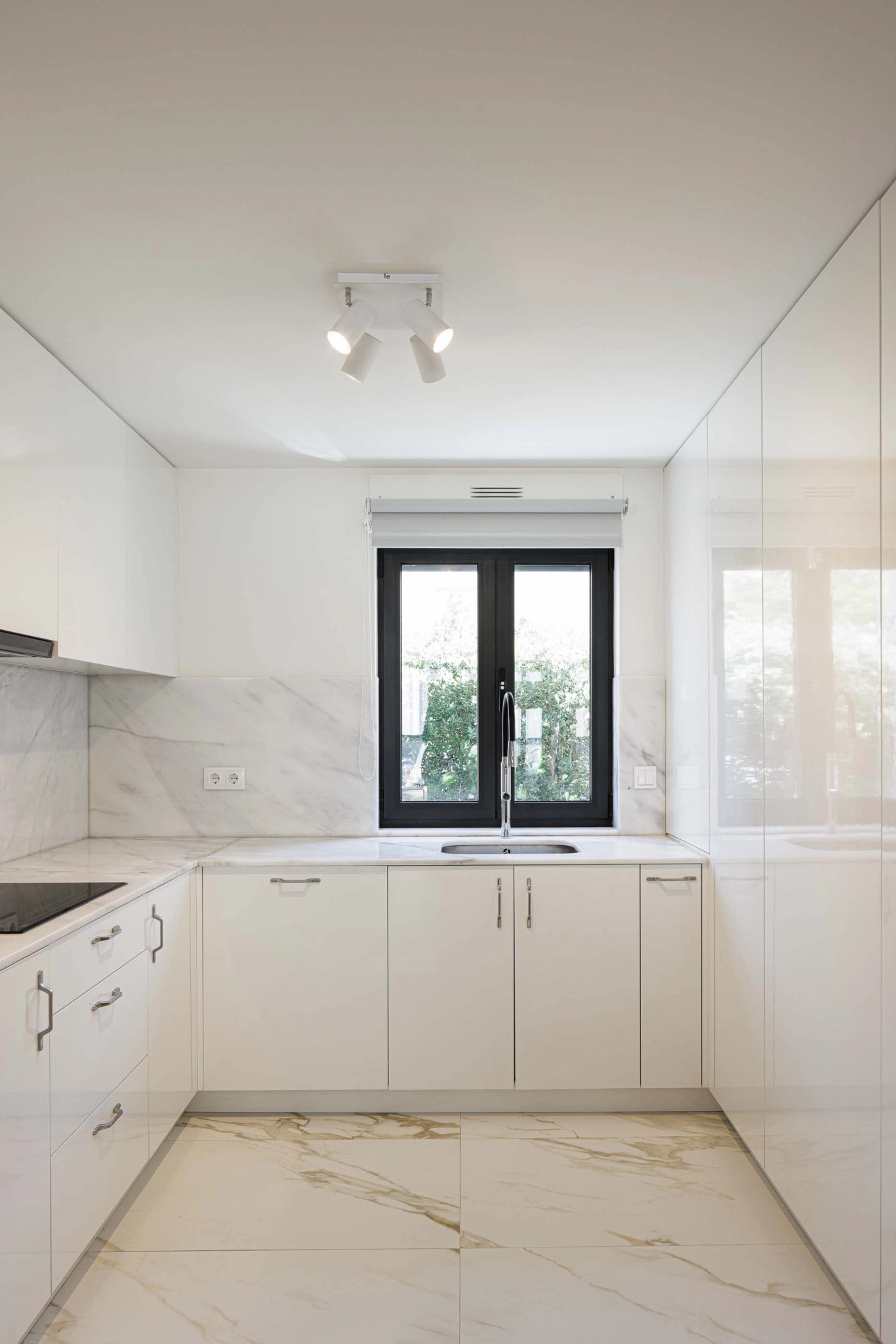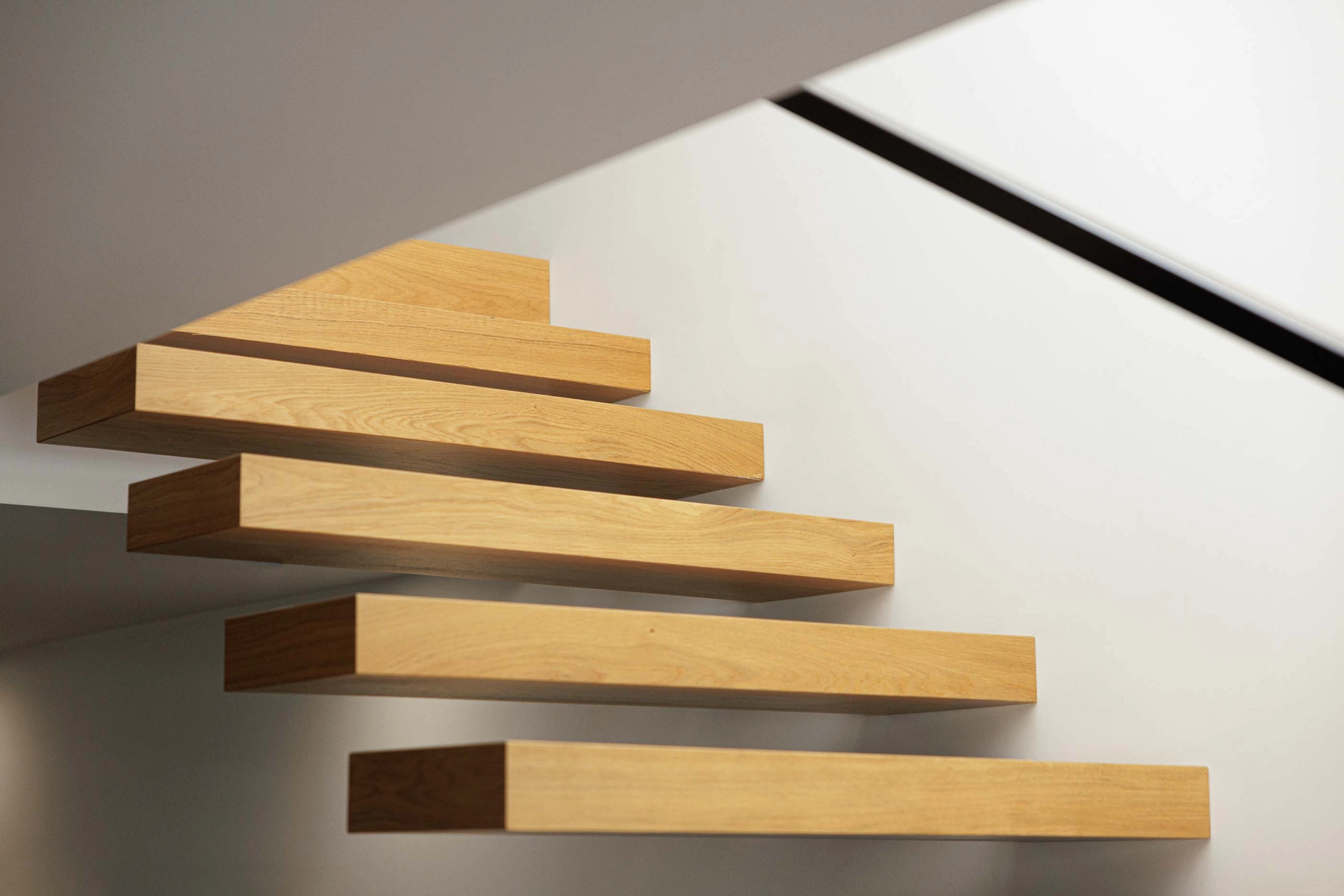A localização da caixa de escadas junto à parede sul e a presença de um ponto de luz zenital garantem uma iluminação natural eficiente, beneficiando a moradia cuja orientação solar é limitada. A construção nova será dotada das mesmas características térmicas e acústicas do edifício existente, com paredes exteriores isoladas pelo interior e acabadas com placas de gesso cartonado. As paredes exteriores desenterradas serão construídas com bloco térmico e sistemas ETICS pelo exterior. A fachada ventilada em fenólico será aplicada no piso 1 da ampliação, incluindo um painel perfurado na fachada norte para iluminação e ventilação.