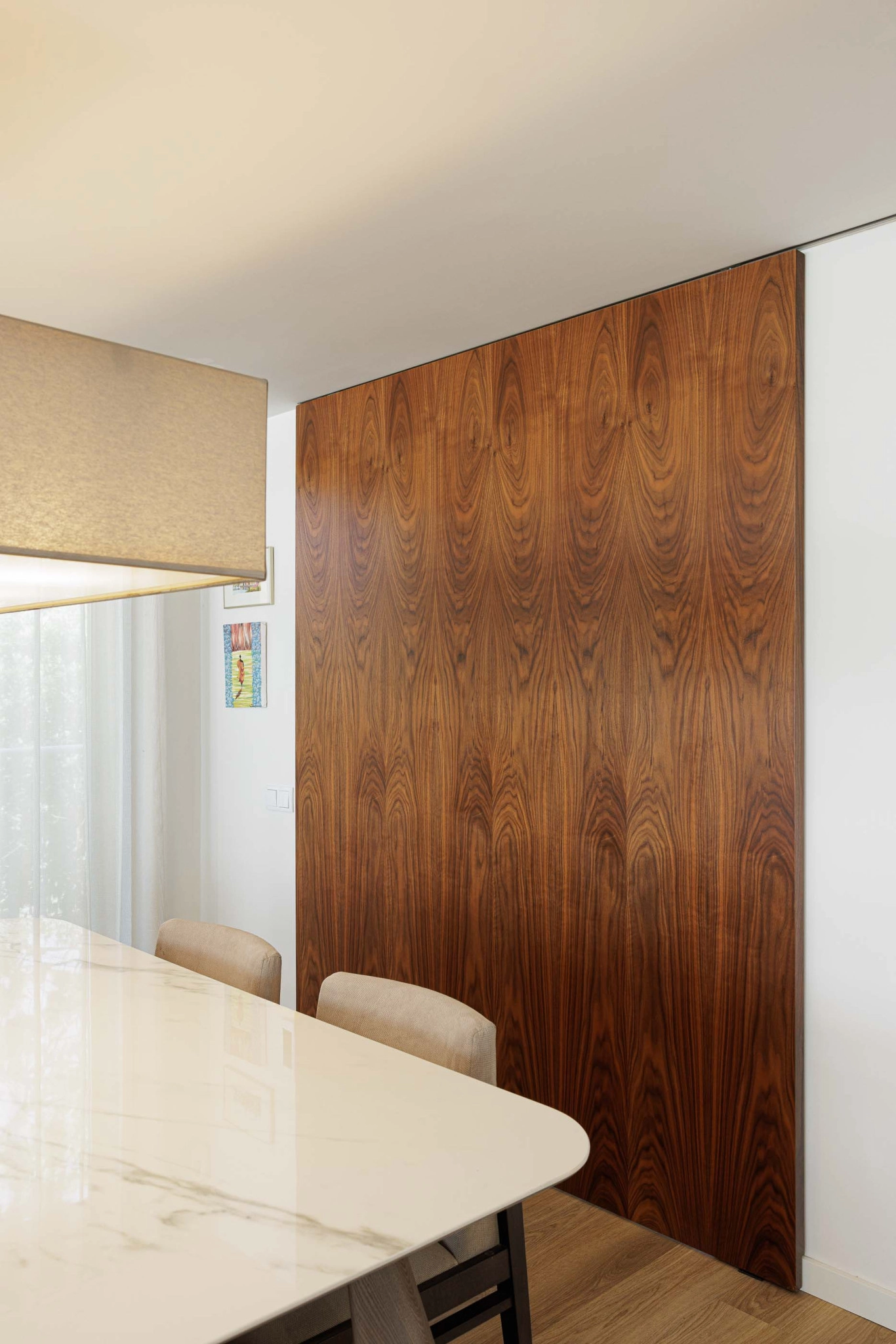 No alçado norte, as duas linguagens encontram-se, resultando um momento de transformação que une o existente ao novo. A fachada ventilada do piso superior e a continuação da parede existente no rés-do-chão criam harmonia formal. No piso 1, a abertura de uma porta de acesso ao exterior reforça a ligação entre interior e exterior, sendo o único ponto de rutura do alçado norte. No piso 2, uma janela de batente da instalação sanitária está localizada atrás de um painel perfurado da fachada ventilada, permitindo a entrada de luz e circulação de ar sem comprometer a privacidade visual.